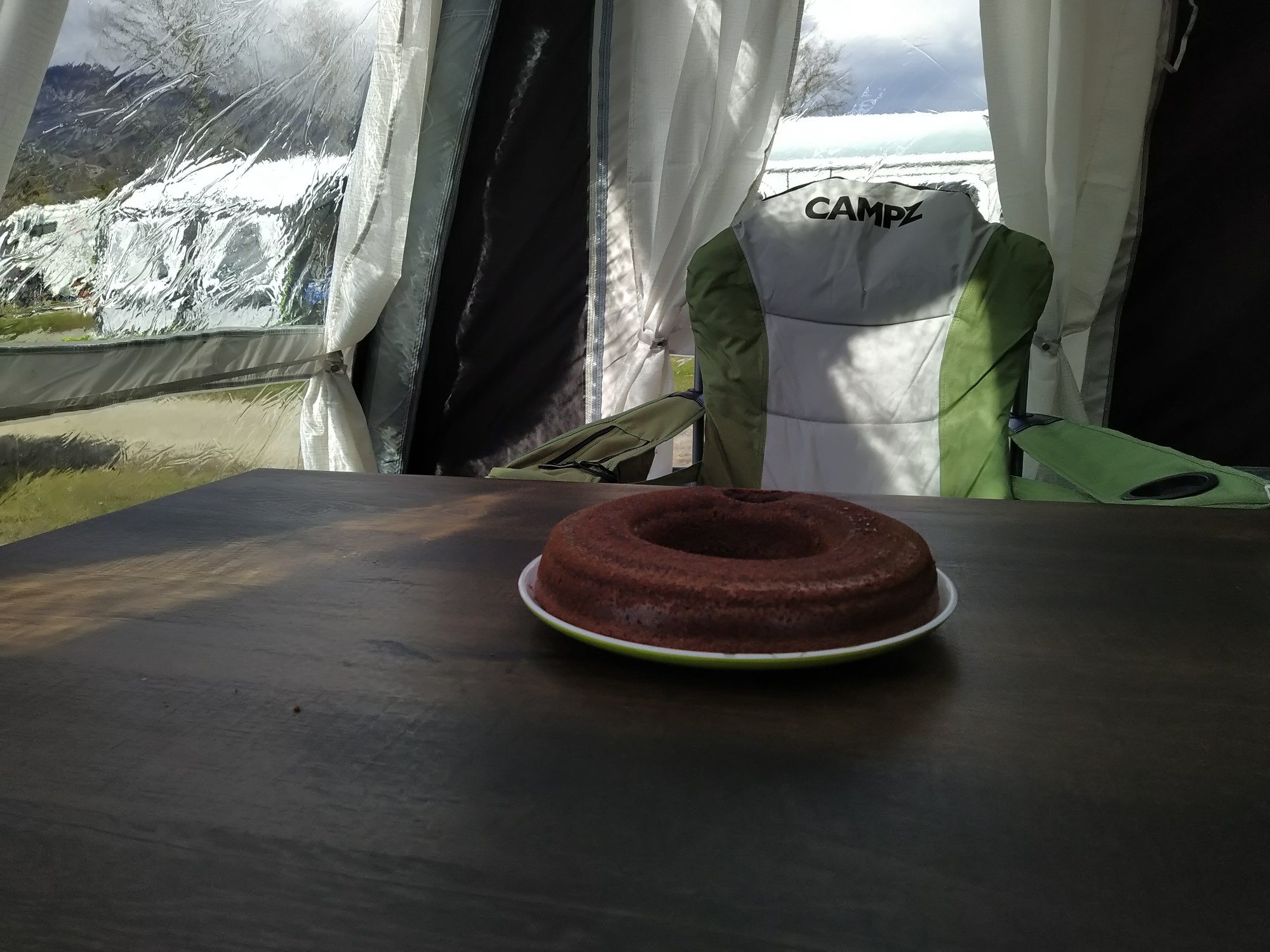 Heute Morgen traf der angekündigte Schnee ein. Wir staunten über die vielen Flocken, welche auf den Boden schwebten. Zum Schneetreiben konnten wir ausgiebig Frühstücken und das Brot vom Vortag fertig geniessen. Da das Wetter noch nicht aufklarte, und wir einige Lebensmittel brauchten, fuhr Fabian zum Einkaufen. In dieser Zeit begann Tanja einen Schokoladenkuchen im Omnia zu backen (diesmal ohne Zucker-Zwischenfall :-)).