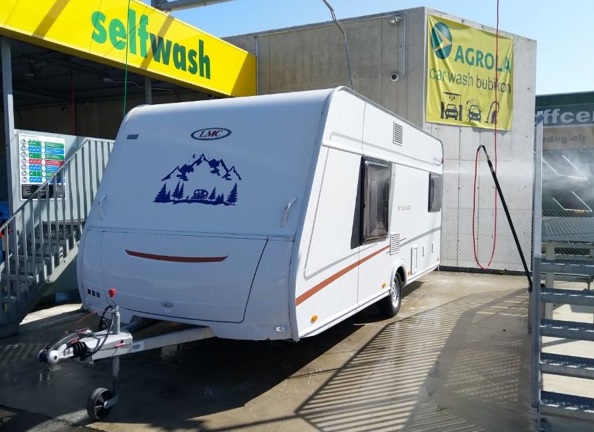 In Bubikon bei dem Wäscheplatz für Grossfahrzeuge war dann bereits ein Wohnmobil am Waschen und wir stellten unseren Wohnwagen auf den Parkplatz. Weil der Waschplatz noch besetzt war, durfte unser Auto zuerst in die Waschbox, auch es hatte es etwas nötig, da parkieren unter einem Baum etwas Spuren hinterlassen kann. Wir mussten nicht mehr lange warten und unser Wohnwagen erhielt die ersehnte Wäsche. Wir hatten, das Gefühl, dass dieser noch nie so sauber war, ausser nach der Werksausfahrt 🙂