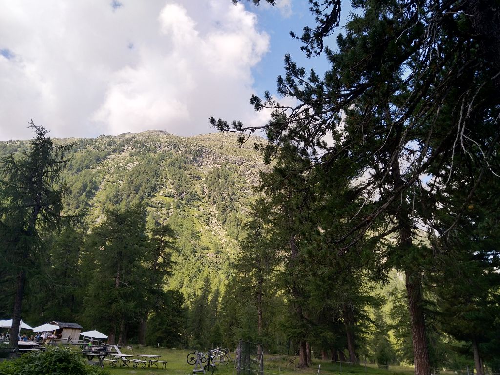 Der Parkplatz wirkte ziemlich voll, weshalb wir den ersten leeren Platz wählten, den wir sahen. Direkt vis-à-vis von uns, warteten eine Frau auf ihren Mann und hütete die E-Bikes, welche sie bereits vom Fahrradträger runtergenommen hatten. Sie wirkte überhaupt nicht erfreut, als wir mit parkieren begannen. Auch wenn wir den Fahrrädern nicht nahe kamen, vertraute sie Fabians Fahrkünsten nicht. Da die Autonummer von Italien war, erklärte uns ihr Misstrauen :P.