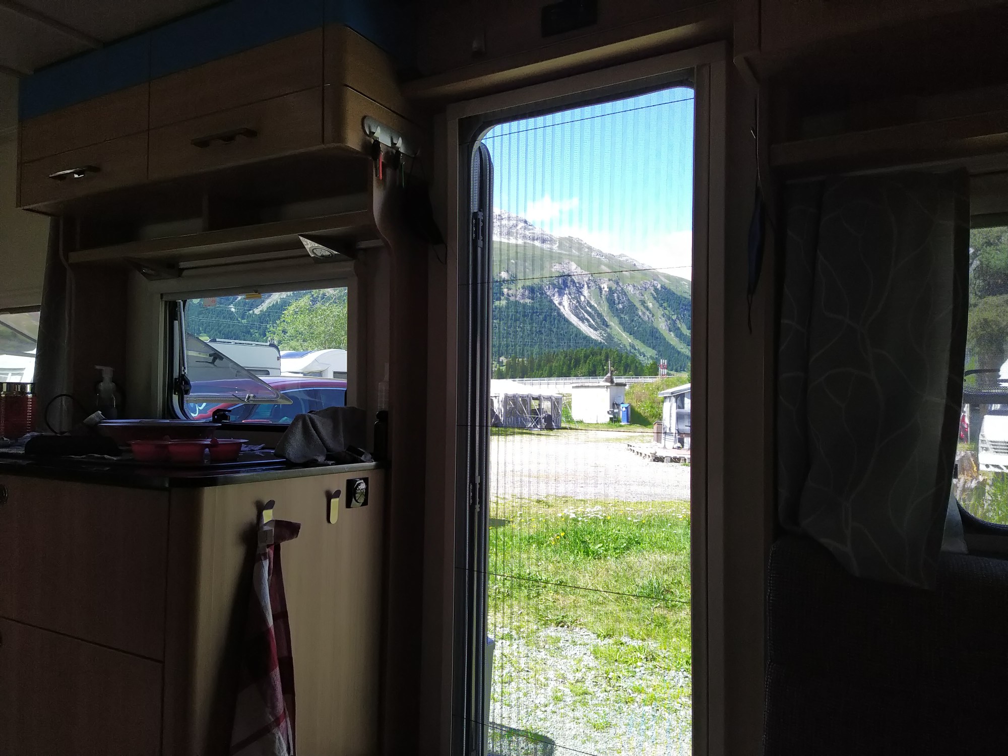 In der Nacht auf heute regnete es ein paar Mal. Wir waren sehr dankbar, dass es heute morgen wieder aufklarte, da wir das Vorzelt abbauen wollten. Nach einem (für Tanja) notwendigen Kaffee räumten wir unseren Wohnwagen auf, und verstauten alles, was wir nicht mehr unbedingt benötigten. Anschliessend holten wir Wasser, entleerten das Abwasser-Taxi und brachten den Abfall weg.