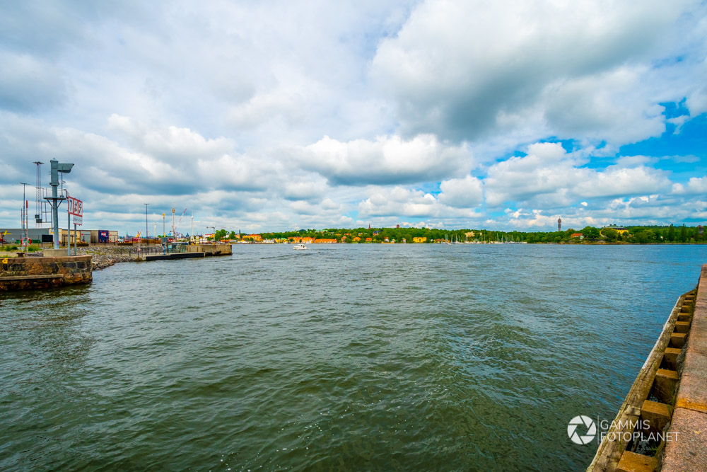 Nachdem wir ein bisschen durch die angrenzenden Quartiere gefahren sind, folgten wir den Wegweisern nach „Nacka C“ und sptäer richtung Elite Hotel Marina Tower Stockholm, wo auch der Hafen liegt. Da die Fahrrad-Wege neben der Hauptstrasse verliefen, konnten wir sicher und in dem uns beliebenden Tempo fahren. Plötzlich waren wir nahe der City. Wir hatten nicht gemerkt wie weit wir schon gefahren sind. Nun wollten wir aber auf jeden Fall noch bis zum Meer fahren. Nachdem wir uns ein paar mal verfahren hatten, kamen wir endlich am Hafen an. Es gab diverse Bänkli und viele waren frei. Nachdem wir uns niedergelassen hatten, assen wir unser Mittagessen und genossen die schöne Aussicht.