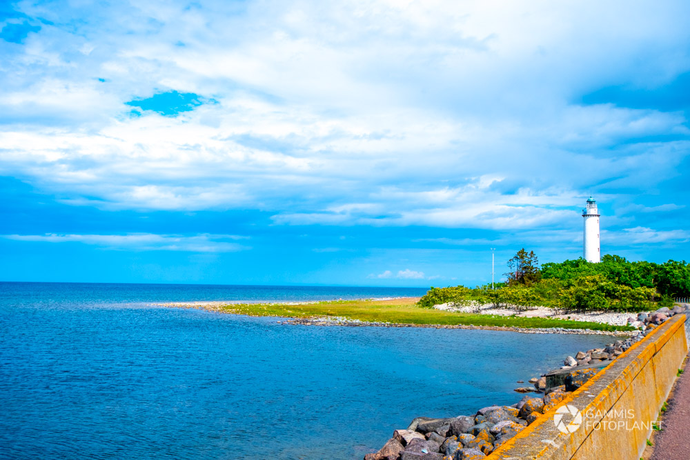 Damit wir neben den vielen Einkaufsmöglichkeiten auch noch etwas von der Insel sahen, beschlossen wir heute die zwei Leuchttürme von Öland zu besuchen. Nach dem wir gefrühstückt und unsere Lunchboxen gepackt hatten, fuhren wir los. Zuerst wollten wir ganz in den Süden der Insel. Wir genossen die Fahrt und das schöne Wetter. Der letzte Weg zum Leuchtturm war für uns speziell: Wir fuhren über Gitterstäbe, welche am Boden verankert waren, damit die weidenden Kühe nicht „abhauen“ können (dieser Teil ist noch nicht speziell, kennen wir ja alle von der Schweiz :P). Die Weide welche wir durchfuhren, war jedoch riiiesen gross und ging manchmal bis zum Meer. Die Möglichkeit einer Kuhherde so viel Platz geben zu können finden wir sehr schön und fühlten uns fast wie bei einer Safari, als wir zwischen den weidenden Kühen hindurchfuhren.