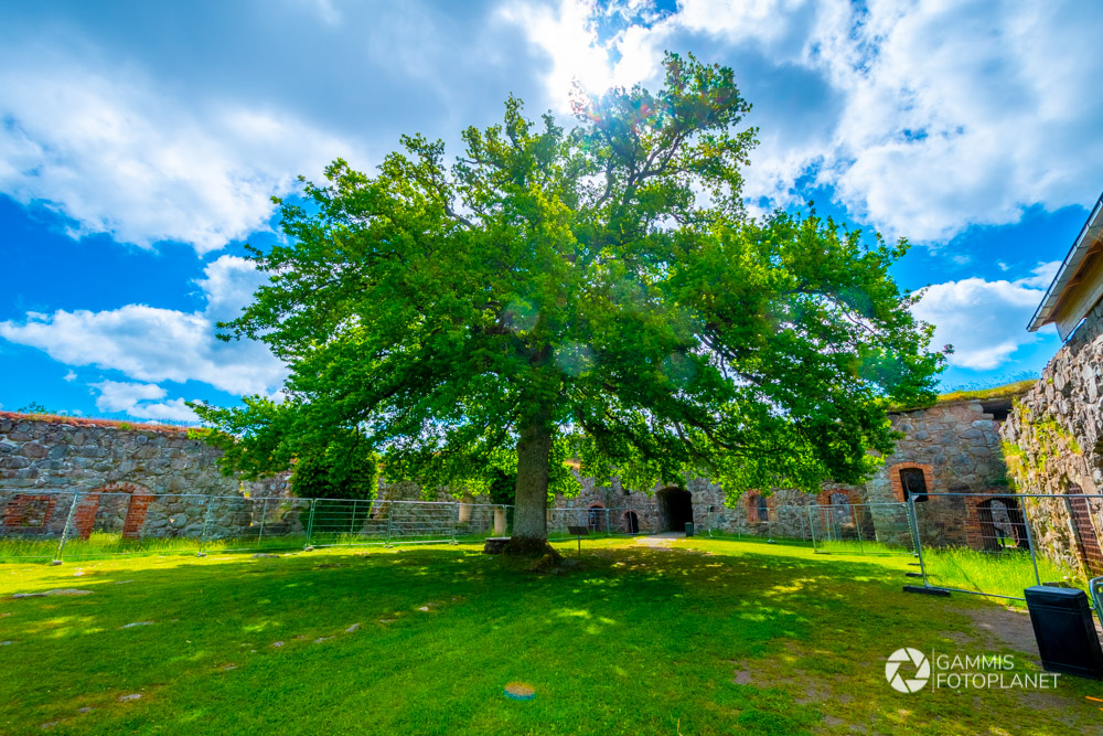 Leider war fast die ganze Ruine abgesperrt, da eine Sanierung dringend notwendig war. Auch mit unseren Helmen wollten wir nicht riskiert werden begraben zu werden, weshalb wir uns an die Vorgaben hielten. Mitten im Hof des Schlosses stand ein sehr grosser, alter Baum. Tanja wurde direkt an Games of Thornes erinnert und bekam den Ohrwurm der Titelmelodie nicht mehr aus dem Kopf.