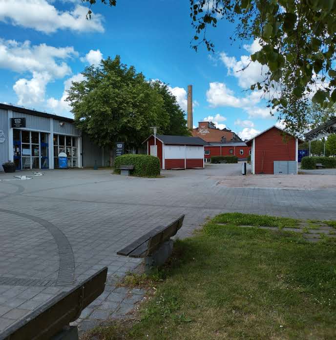 Weitere 10 Minuten später kamen wir in Kosta an. Unterdessen war es bereits halb 12 Uhr. Daher assen wir im Kosta Brukscafé unser Mittagessen. Fabian wählte ein Grill-Sandwich mit Käse und Salami und Tanja nahm eine gebackene Kartoffel mit veganer Füllung (Bohnen, Mais, Peperoni und Kokos Milch). Zu den Menus erhielten wir je Salat, Peperoni, Gurkenscheiben und 1 Scheibe Wassermelone. Abgesehen vom trockenen Salat (da keine Sauce), war das Essen sehr gut! Bisher hatten wir hier lediglich die Desserts gegessen, welche wir auch sehr empfehlen können.