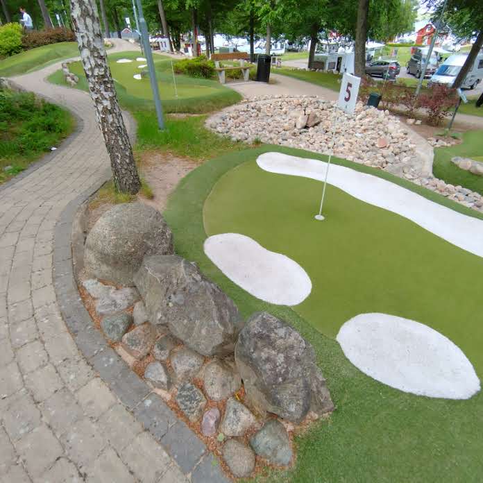 Am Nachmittag bauten wir das Tarp ab und versorgten die Stühle und den Tisch wieder im Wohnwagen. Die Wäsche wurde wieder zusammengelegt und verstaut, auch sonst räumten wir auf, damit die morgige Abreise bereits vorbereitet werden konnte. Anschliessend gönnten wir uns zum Ersten Mal (!) eine Runde auf dem Minigolf-Platz. Es machte grossen Spass, wir wollen dies baldmöglichst wiederholen.